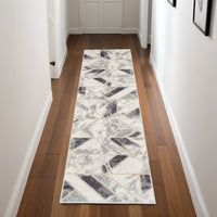 8' Ivory Black and Gray Geometric Non Skid Runner Rug