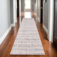 8' Ivory Blue And Yellow Striped Hand Tufted Runner Rug