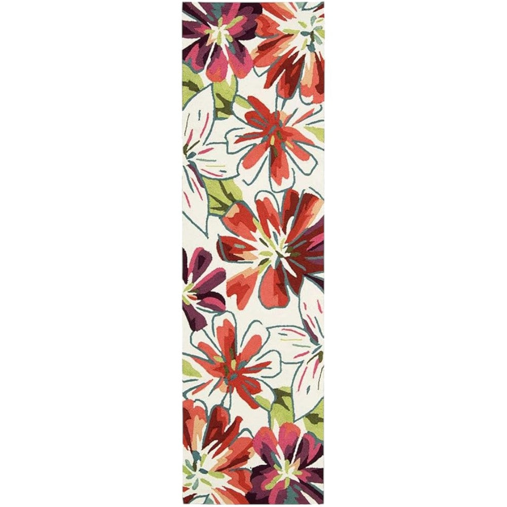 This 8-foot ivory green and red botanical leaves hand carved handmade runner rug, is a great way to add warmth to a room. Ideal for spaces with kids and pets, this rug is stain resistant to help repel dirt and spilled liquids. Crafted by skilled artisans, this hand carved rug is genuine and unique. No two will be exactly alike. Built to last, this rug crafted from polyester fibers is known for its durability and long lasting appeal. Rugs are a great way to showcase your style, hide imperfections, warm your home and reduce noise. This rectangular shaped rug features a abstract design that will add a functional and decorative accent to your space. This contemporary styled runners makes a great accent for the hallway, in front of cabinets, in the laundry room, or any other space you need a narrow and long rug. 27-inch h x 96-inch w x 0.25-inch d