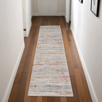 8' Ivory Red and Blue Abstract Non Skid Runner Rug