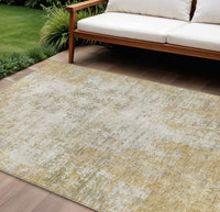 8' X 10' Wheat And Ivory Abstract Washable Indoor Outdoor Area Rug