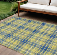 8' X 10' Yellow Blue And Ivory Plaid Washable Indoor Outdoor Area Rug