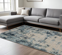 8' X 11' Beige And Blue Abstract Distressed Area Rug With Fringe