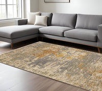 8' X 11' Beige And Gold Abstract Area Rug With Fringe