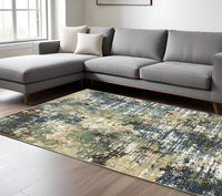 This 8-foot x 11-foot blue abstract power loom area rug, is a great way to add warmth to a room. This rectangle shaped rug features a abstract design in blue to give it visual interest. A classic shape marries with good looking design for your space ideal for spaces with kids and pets, this rug is stain resistant to help repel stains and spilled liquids. Place this area rug against a hardwood or tile floor and it will enliven your living space with style and sophistication. 94.49-inch H x 133.86-inch W x 0.39-inch D