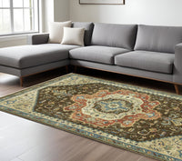 Add some artistry to your room with this 8-foot x 11-foot brown oriental power loom area rug with fringe. This rectangle shaped rug features a oriental design in brown to give it visual interest. A classic shape marries with good looking design for your space ideal for spaces with kids and pets, this rug is stain resistant to help repel stains and spilled liquids. Tassel ends bring a timeless and fashionable look to your interior. Place this area rug against a hardwood or tile floor and it will enliven your living space with style and sophistication. 94.49-inch H x 133.86-inch W x 0.32-inch D