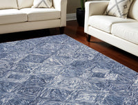 8' X 11' Denim Blue and Ivory Wool Geometric Area Rug