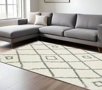 8' X 11' Ivory Gray And Tan Diamond Shag Area Rug With Fringe