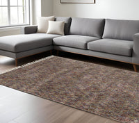 8' X 11' Orange Blue And Yellow Abstract Shag Area Rug With Fringe
