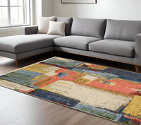 8' X 11' Pink Red And Yellow Abstract Area Rug With Fringe