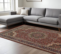 Set an inviting tone in your space with this 8-foot x 11-foot ivory red and blue oriental area rug. Ideal for spaces with kids and pets, this rug is stain resistant to help repel dirt and spilled liquids. Built to last, this rug crafted from polypropylene fibers is known for its durability and long lasting appeal. Rugs are a great way to showcase your style, hide imperfections, warm your home and reduce noise. This larger sized, traditional styled rug is ready to create a focal point or statement piece in your room. 94.49-inch h x 129.92-inch w x 0.43-inch d.