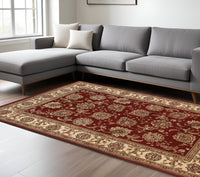 Add great coloration and comfortable texture to your space with this 8-foot x 11-foot ivory and red oriental area rug. Ideal for spaces with kids and pets, this rug is stain resistant to help repel dirt and spilled liquids. Built to last, this rug crafted from polypropylene fibers is known for its durability and long lasting appeal. Rugs are a great way to showcase your style, hide imperfections, warm your home and reduce noise. This larger sized, traditional styled rug is ready to create a focal point or statement piece in your room. 94.49-inch h x 129.92-inch w x 0.43-inch d.