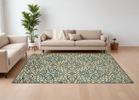 8' X 11' Tan Blue and Taupe Floral Power Loom Area Rug