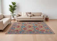 8' X 12' Blue Red and Yellow Wool Oriental Hand Knotted Area Rug