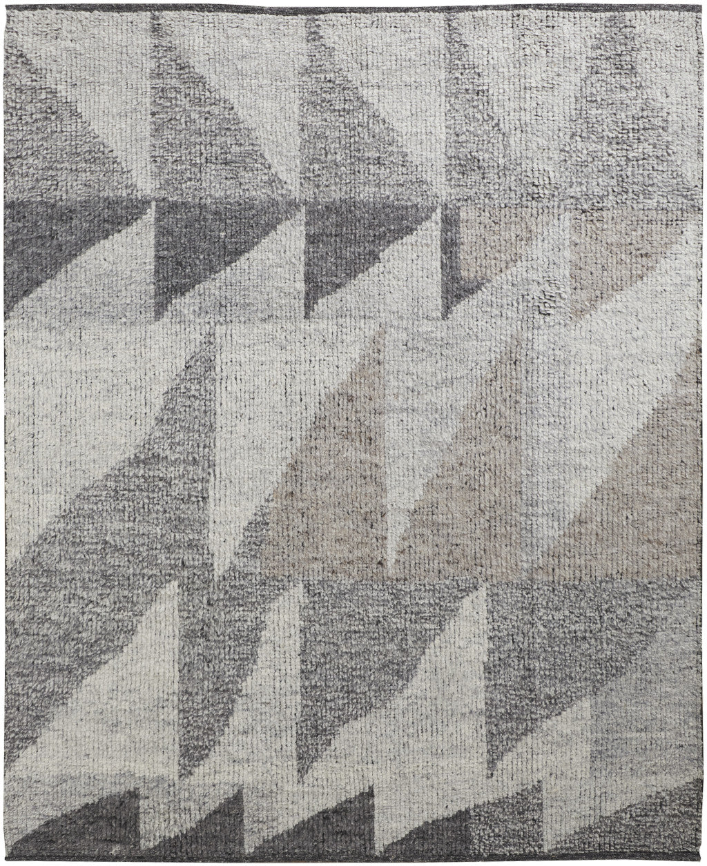 Add some artistry to your room with this 8-foot x 12-foot gray and ivory wool geometric hand knotted area rug. This rectangle shaped rug features a geometric design in gray and ivory to give it visual interest. A classic shape marries with good looking design for your space ideal for spaces with kids and pets, this rug is stain resistant to help repel stains and spilled liquids. Crafted by skilled artisans, this hand knotted rug is genuine and unique. No two will be exactly alike. Area rugs help to give warmth and sense of home to your space. 102-inch H x 138-inch W x 0.39-inch D