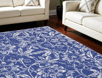8' X 12' Ivory and Navy Blue Floral Distressed Non Skid Area Rug