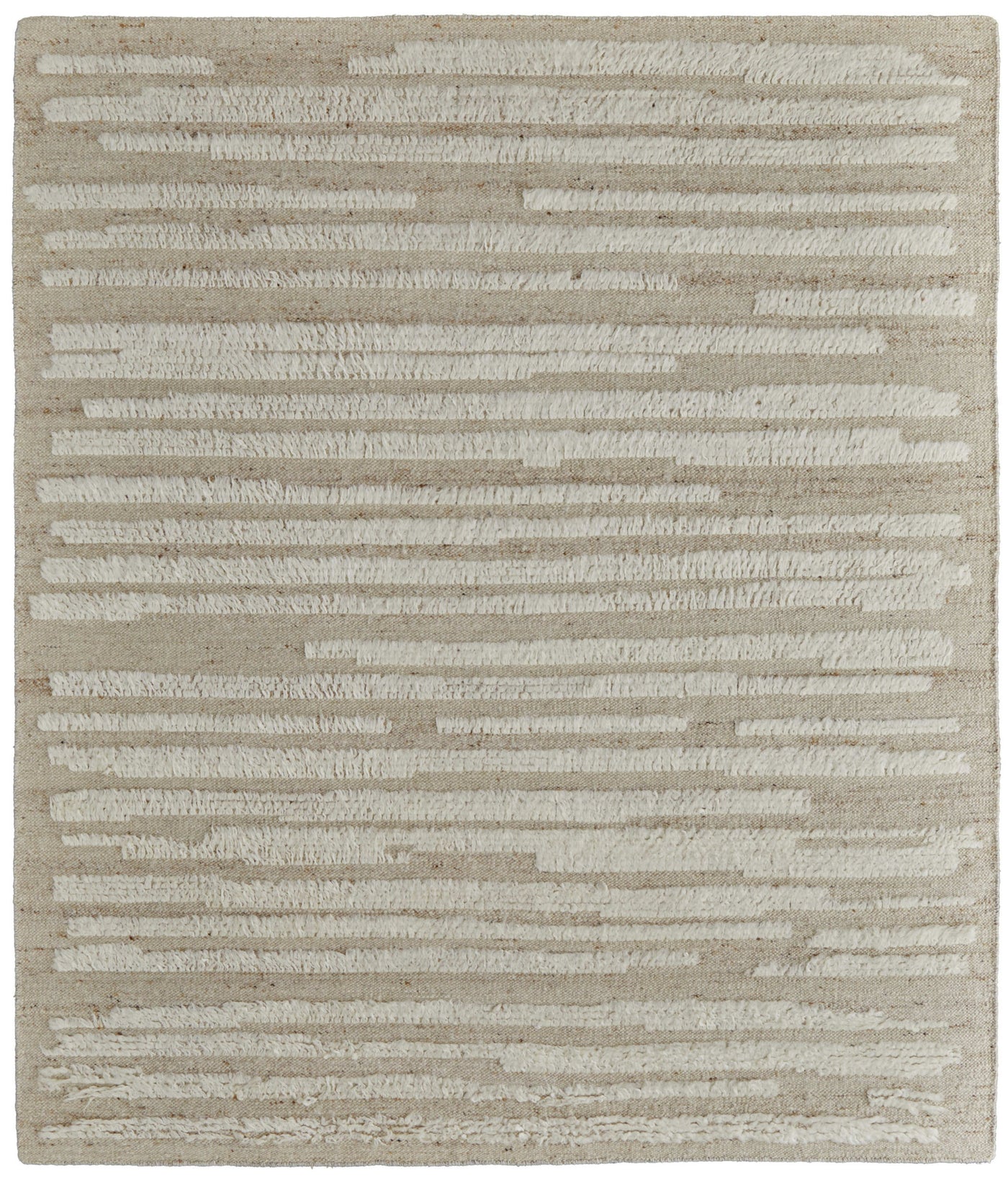 This 8-foot x 12-foot white and tan wool striped hand woven area rug, is a great way to add warmth to a room. This rectangle shaped rug features a striped design in white and tan to give it visual interest. A classic shape marries with good looking design for your space ideal for spaces with kids and pets, this rug is stain resistant to help repel stains and spilled liquids. Crafted by skilled artisans, this hand woven rug is genuine and unique. No two will be exactly alike. Place this area rug against a hardwood or tile floor and it will enliven your living space with style and sophistication. 102-inch H x 138-inch W x 0.71-inch D