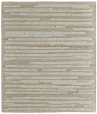 8' X 12' White and Tan Wool Striped Hand Woven Area Rug