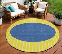 8' Yellow And Blue Round Striped Washable Indoor Outdoor Area Rug