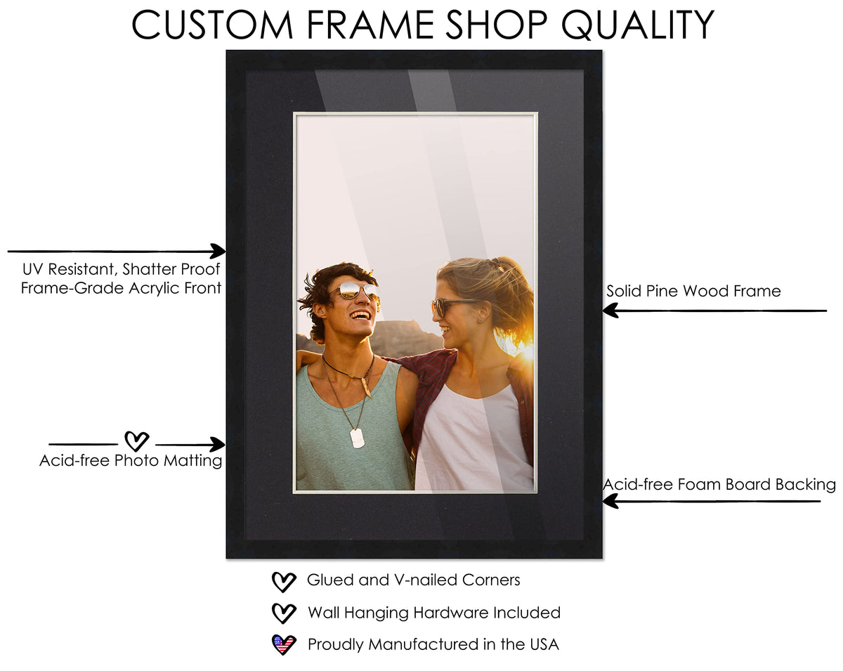 8X10 Frame Black Wood With Black Mat | 10X12 Frame Matted To 8X10 | Display Your Photo Under Uv Acrylic Shatter Guard Front, Wit
