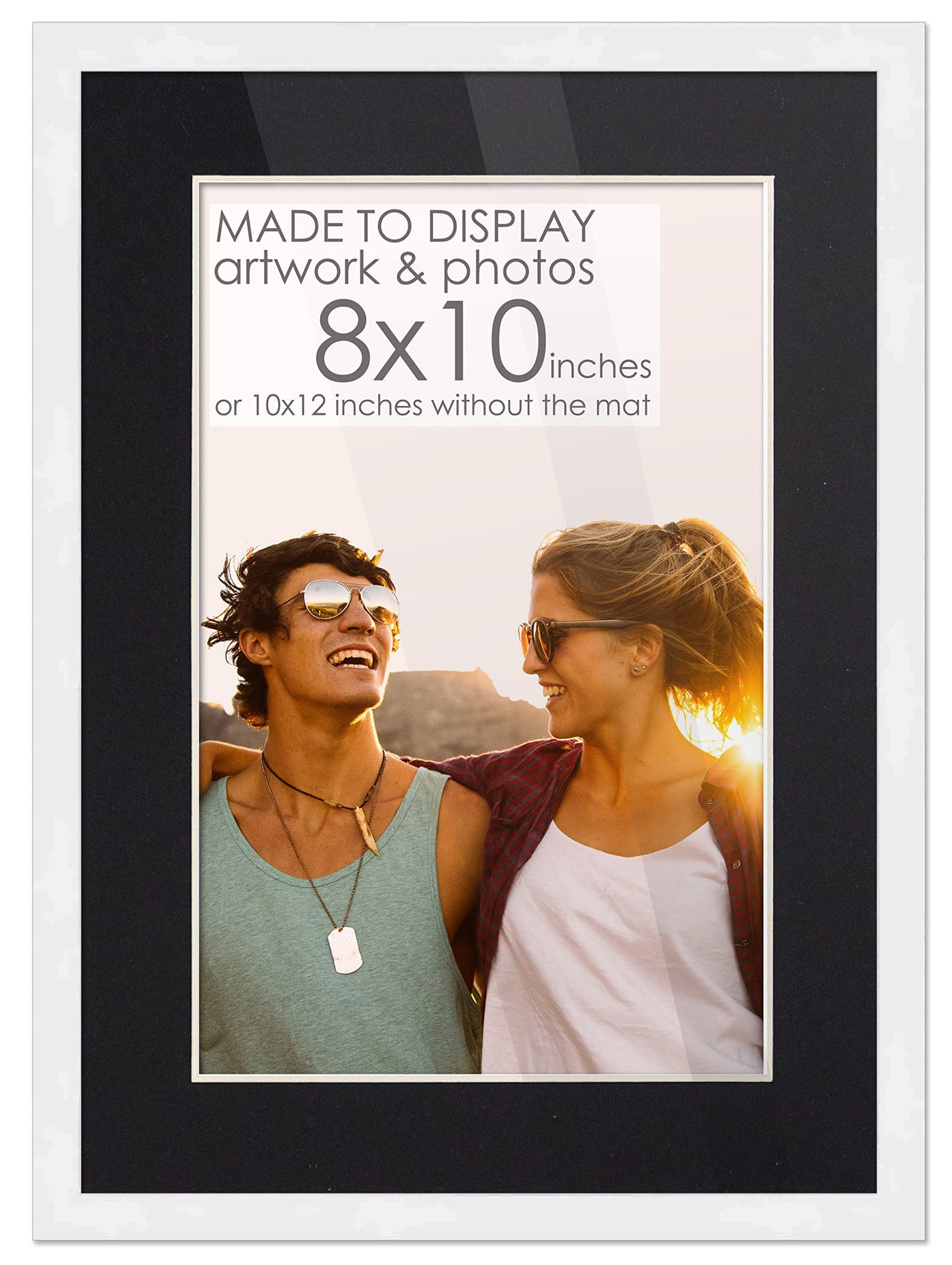 8X10 Frame White Wood With Black Mat | 10X12 Frame Matted To 8X10 | Display Your Picture Under Uv Acrylic Shatter Guard Front, W