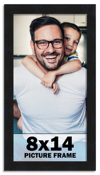 Q: What is the size of the 8x14 Black Picture Frame?A: The frame is designed to fit artwork, photos, and documents that measure 8x14 inches.