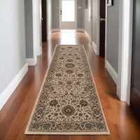 This 9-foot ivory oriental power loom runner rug, is a great way to add warmth to a room. This runner shaped rug features a oriental design in ivory to give it visual interest. A classic shape marries with good looking design for your space the coloring of this rug adds a delightfully neutral tone to your home and will easily match with most any decor. Ideal for spaces with kids and pets, this rug is stain resistant to help repel stains and spilled liquids. Place this area rug against a hardwood or tile floor and it will enliven your living space with style and sophistication. 31.5-inch H x 112.2-inch W x 0.43-inch D