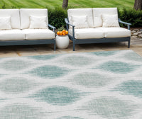 This 9-foot x 12-foot aqua teal blue and ivory ikat washable indoor outdoor area rug, is a great way to add warmth to a room. This rectangle shaped rug features a ikat design that will work well both indoors or out. A classic shape marries with good looking design for your living room, hall, bedroom, porch, patio, or poolside. Ideal for outdoor spaces or high traffic areas with kids and pets, this rug is made from heavy duty polyester that is stain resistant to help repel water, dirt, and stains. Makes a great way to dress up your patio, porch, or poolside, but also works well as a durable and easy to maintain option in the kitchen, family room, or mudroom. 108-inch h x 144-inch w x 0.19-inch d.