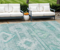 9' X 12' Aqua Turquoise And Ivory Southwestern Washable Indoor Outdoor Area Rug