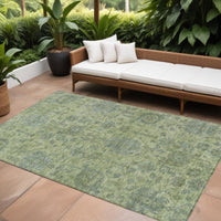 9' X 12' Artichoke Green And Gray Damask Washable Indoor Outdoor Area Rug