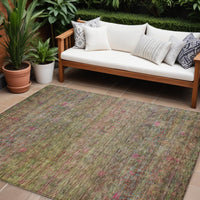 9' X 12' Artichoke Green And Hot Pink Floral Washable Indoor Outdoor Area Rug