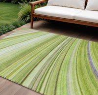 9' X 12' Artichoke Green And Olive Green Abstract Washable Indoor Outdoor Area Rug
