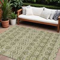 9' X 12' Artichoke Green Gray And Ivory Moroccan Washable Indoor Outdoor Area Rug