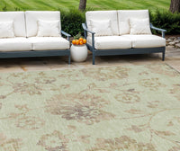 9' X 12' Artichoke Green Mint Green And Taupe Floral Washable Indoor Outdoor Area Rug