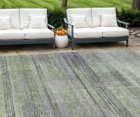 9' X 12' Artichoke Green Purple And Fern Green Striped Washable Indoor Outdoor Area Rug