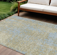 9' X 12' Beige And Blue Abstract Washable Indoor Outdoor Area Rug