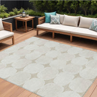 9' X 12' Beige And Brown Abstract Washable Indoor Outdoor Area Rug