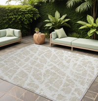 9' X 12' Beige And Ivory Abstract Washable Non Skid Indoor Outdoor Area Rug