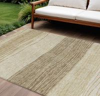 9' X 12' Beige Brown And Taupe Striped Washable Indoor Outdoor Area Rug