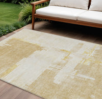 9' X 12' Beige Gold And Tan Abstract Washable Indoor Outdoor Area Rug