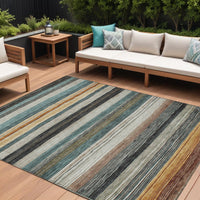 9' X 12' Beige Gold Brown And Taupe Striped Washable Indoor Outdoor Area Rug