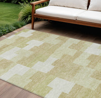 9' X 12' Beige Ivory And Brown Geometric Washable Indoor Outdoor Area Rug