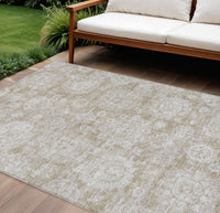 9' X 12' Beige Tan And Gray Floral Washable Indoor Outdoor Area Rug
