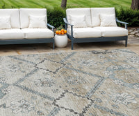 9' X 12' Beige Taupe And Tan Floral Washable Indoor Outdoor Area Rug