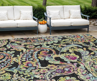 9' X 12' Black And Artichoke Green Paisley Washable Indoor Outdoor Area Rug