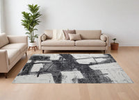 9' X 12' Black and Gray Abstract Hand Woven Area Rug