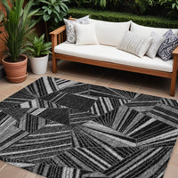 9' X 12' Black And Gray Geometric Washable Indoor Outdoor Area Rug