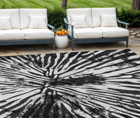 Add some artistry to your room with this 9-foot x 12-foot black charcoal and ivory abstract washable indoor outdoor area rug. This rectangle shaped rug features a abstract design that will work well both indoors or out. A classic shape marries with good looking design for your living room, hall, bedroom, porch, patio, or poolside. The coloration of this rug infuses an updated and modern vibe into your space. Ideal for outdoor spaces or high traffic areas with kids and pets, this rug is made from heavy duty polyester that is stain resistant to help repel water, dirt, and stains. Versatile in use, durable, and easy to maintain, this rug is an ideal solution to add a decorative and inviting touch to your indoor or outdoor space. 108-inch h x 144-inch w x 0.19-inch d.