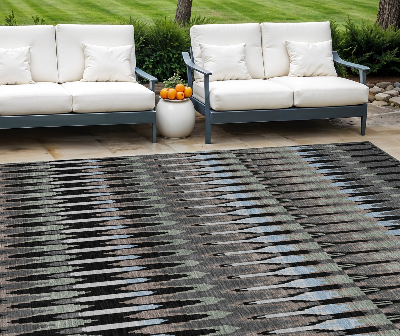 9' X 12' Black Gray And Blue Southwestern Washable Indoor Outdoor Area Rug