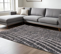 Add some artistry to your room with this 9-foot x 12-foot black gray and ivory abstract area rug. Ideal for spaces with kids and pets, this rug is stain resistant to help repel dirt and spilled liquids. Built to last, this rug crafted from polypropylene blend fibers is known for its durability and long lasting appeal. Rugs are a great way to showcase your style, hide imperfections, warm your home and reduce noise. This larger sized, industrial styled rug is ready to create a focal point or statement piece in your room. 108-inch h x 144-inch w x 1-inch d.